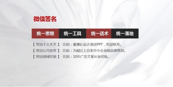 第一:我們要從自身企業(yè)的角度出發(fā),思考想通過朋友圈對外展示一個什么樣的企業(yè)形象?什么樣的人物形象?