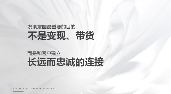 總的來說,發(fā)朋友圈的目的不是變現(xiàn)或帶貨,和客戶建立一個長遠而忠誠的連接才是最主要目的。